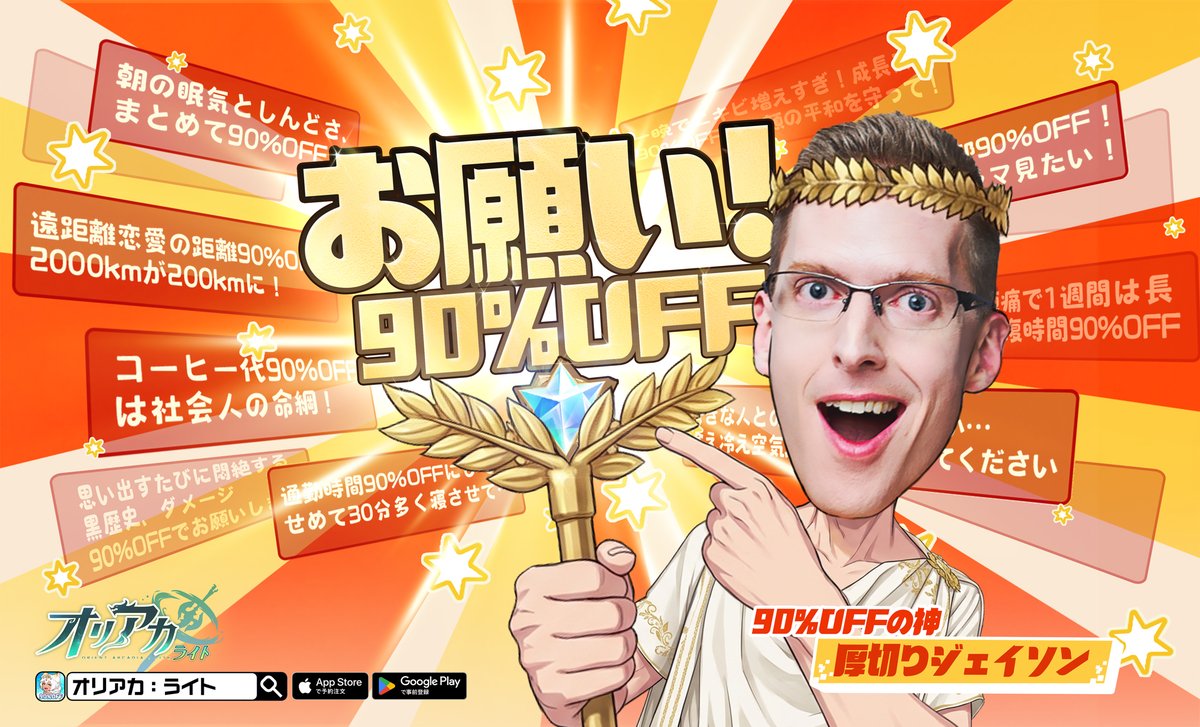 厚切りジェイソン、新作RPG『オリアカ:ライト』アンバサダー就任!「Why 90% OFF!?」驚愕のコスパで“逆転人生”の幕開けを宣言