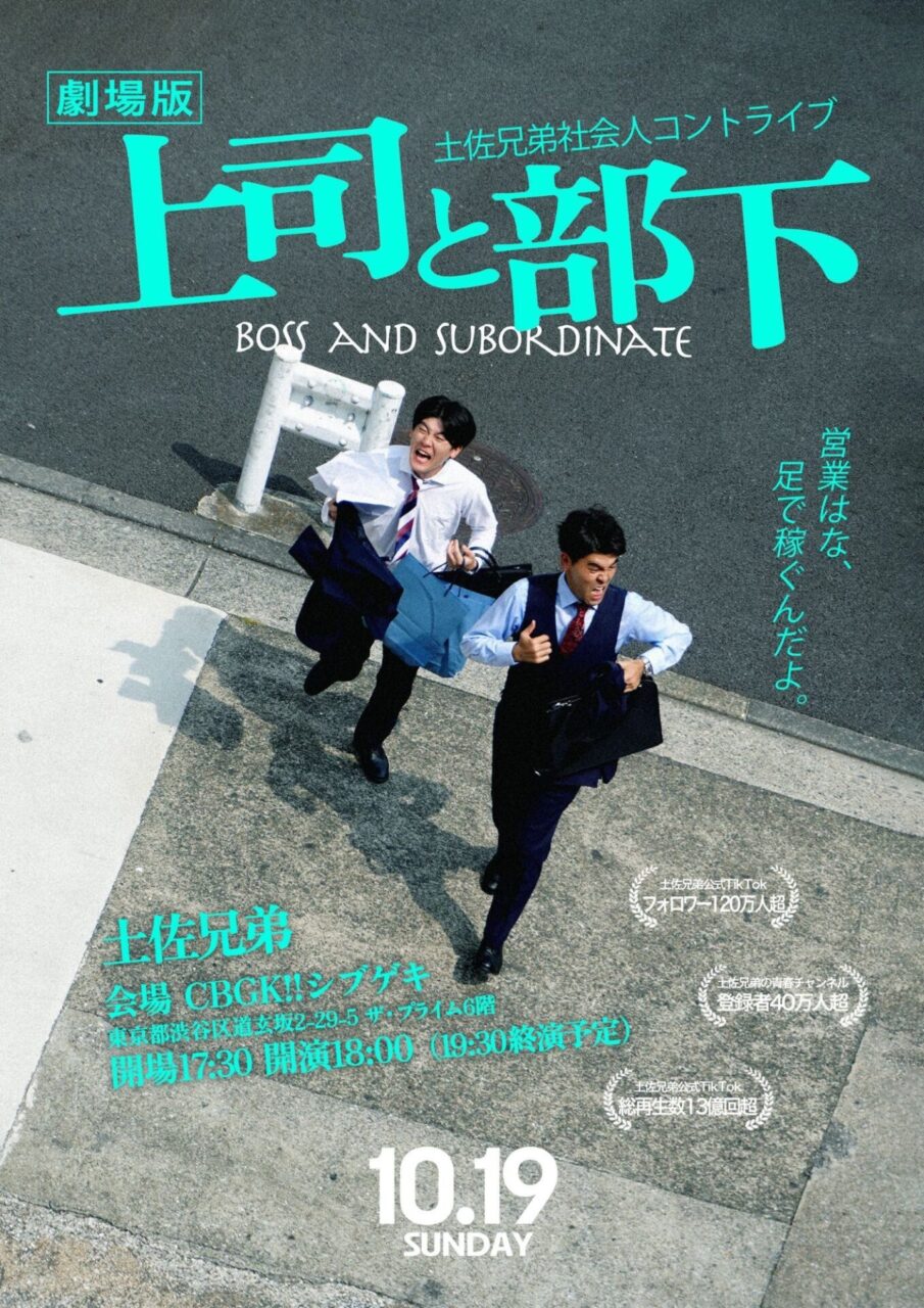 お笑いコンビ・土佐兄弟が10月19日(日)に開催した土佐兄弟社会人コントライブ 「劇場版上司と部下」(会場:CBGKシブゲキ!!)が、社会人の「あるある」を痛烈に、そして爆笑必至で切り取り、大盛況の内に幕を閉じた。YouTubeで大人気の「社会人あるある」を題材にした本公演は、リアルな共感とユーモアが交差する、まさに「劇場版」と呼ぶにふさわしい濃密なライブとなった。