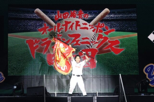 観客からの声援を制した山田は、高校野球の選手さながら自分を奮い立たせる掛け声・通称「済美声」を気合十分に響かせて、喉の復活を堂々宣言。番組で作ったオリジナルソング「なかま」のブラスバンドバージョンにのせて、マスコットのドラゴンちゃん・フェニックスくんを引き連れながら「月曜オールナイトニッポン野球部」のプラカードを持って横浜アリーナの外周をまわり、「山田裕貴のオールナイトニッポン・ドラゴンフェニックス甲子園開幕です!!!」と気合一声でイベントをスタートさせた。