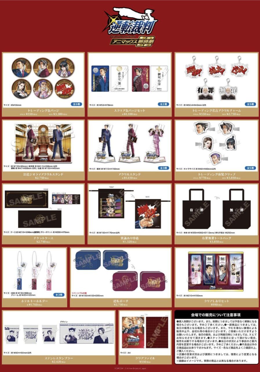 原作のイラストを使用した朗読劇限定のオリジナルグッズは全 15 種類。“キャストとお揃いの台本”を持ったキャラクターの「アクリルスタンド」をはじめ、成歩堂龍一と御剣怜侍がリバーシブルになる「逆転ポーチ」や綾里姉妹の「前髪クリップ」、小中大の「ホテルキーホルダー」、「有罪無罪トートバッグ」など、今までにないオリジナルグッズを手に取って、本番当日の法廷バトルを最大級にお楽しみください。公演のチケットがない方でも購入可能ですので、お近くに御用の際はお気軽にどうぞ♪