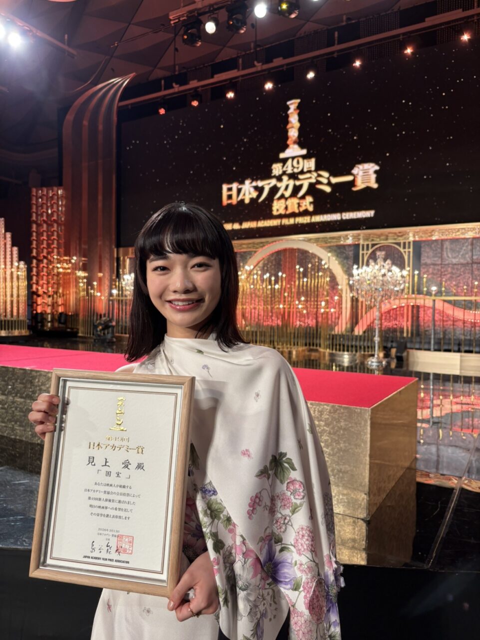 3月13日(金)、日本映画界最高の栄誉とされる「第49回日本アカデミー賞授賞式」が開催され、見上愛が映画『国宝』での演技で高い評価を受け、新人俳優賞を受賞し登壇した。
